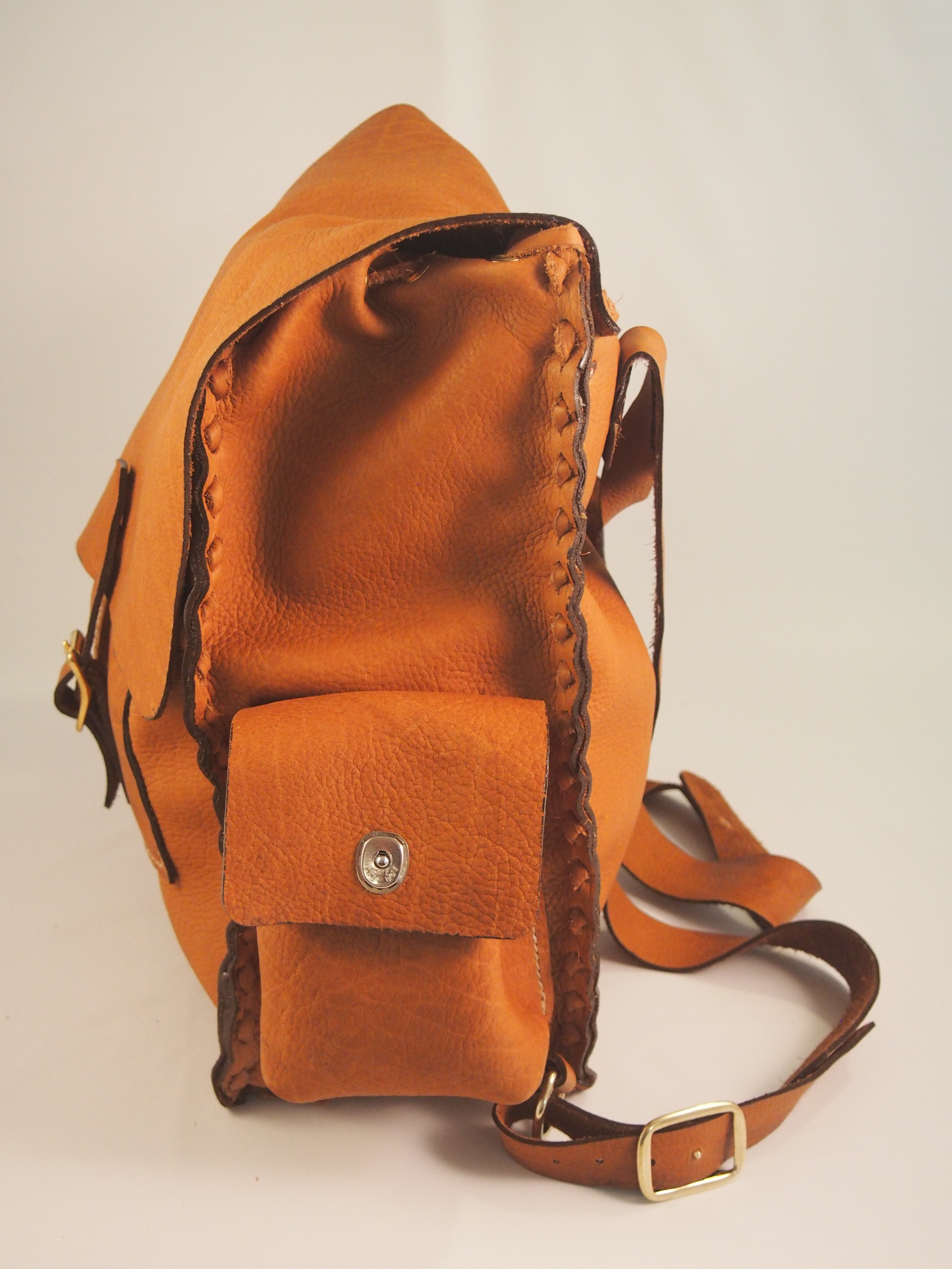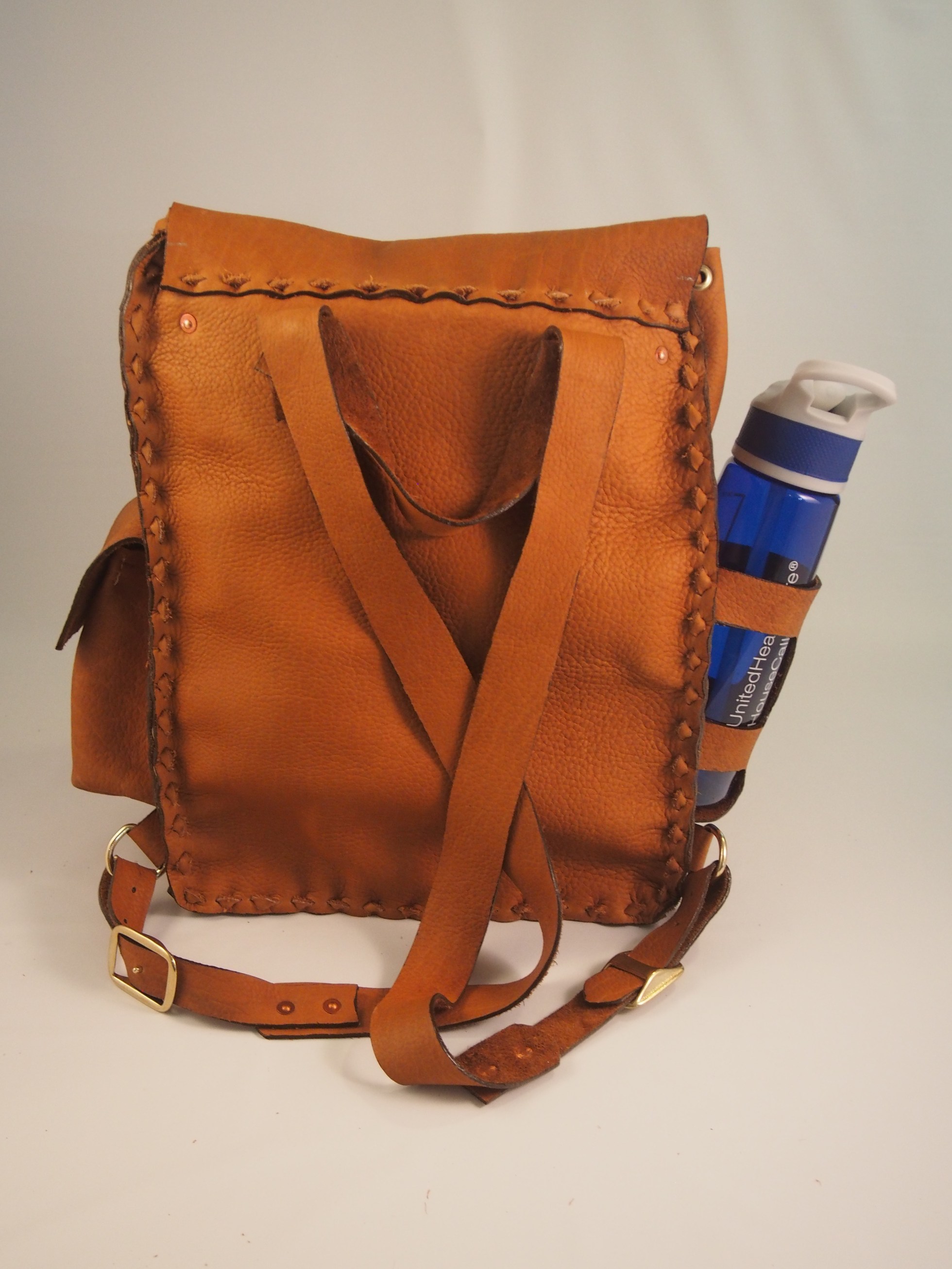 Make your own bison leather backpack! This backpack is made from fine Bison Leather – handsewn and laced by you! At this workshop you will receive all the leather pre-cut as well as all hardware. You will punch holes, lace, stitch, and set copper rivets to make your own Bison Leather backpack that will be unique and last many years. This course will now be offered as an airbnb experience. The workshop will run 6 hours 10:00 AM – 4:00 PM. In this time you should be able to complete all punching, rivet and eyelet settings – everything that requires special tools. You will complete some stitching and lacing.